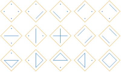Here are some diagrams representing the different ways the sets can be partitioned: a line connects elements in the same subset, and a point represents a singleton subset.