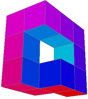 However, introducing various twists results in a figure with a single face, in the Möbius strip sense. Here’s a single-sided figure made of 10 cubes: